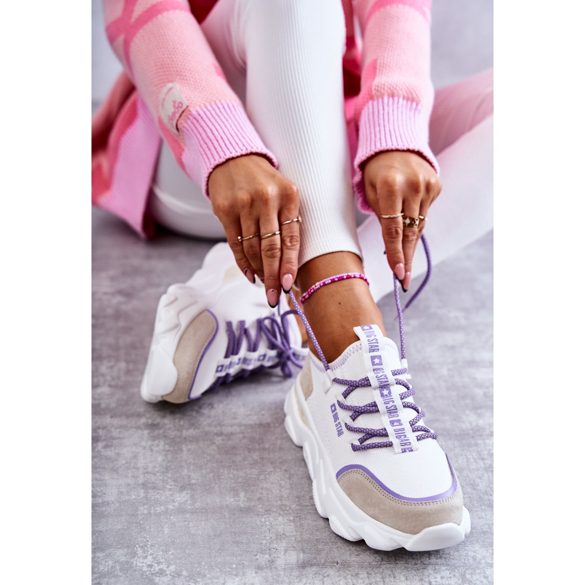 Les baskets Big Star KK274029 sont disponibles dans une combinaison élégante de blanc et de violet, ce qui les rend parfaitement adaptées à une variété de styles, du sport au décontracté. Le modèle slip-on avec laçage est une solution simple qui permet de l'enfiler et de l'enlever facilement.