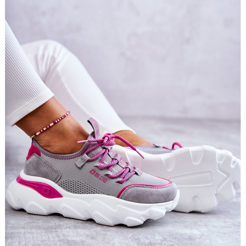 Les baskets Memory Foam System Big Star KK274030 pour femmes en gris et rose sont le choix parfait pour les femmes qui apprécient l'apparence à la mode et le confort. Fabriquées en tissu aéré et élastique, avec des inserts supplémentaires en cuir écologique et en daim écologique, ces baskets assurent un ajustement parfait au pied.