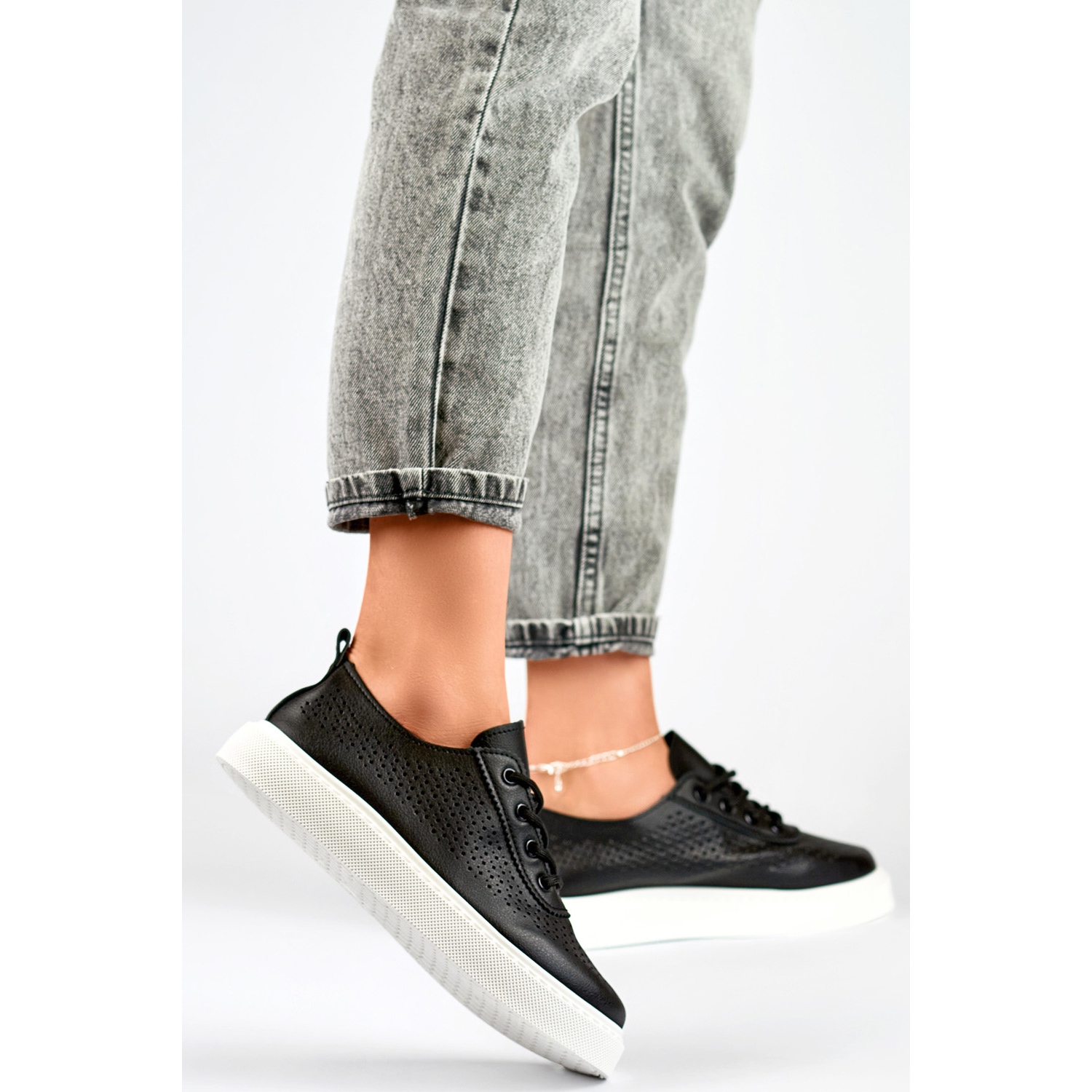 Inna marka Baskets femme noires ajourées à semelle épaisse le noir