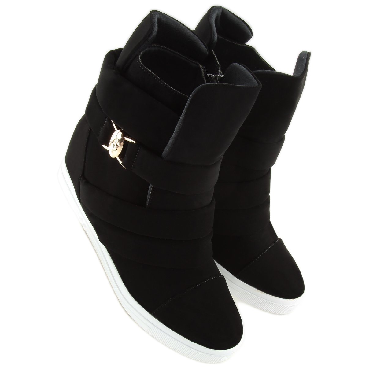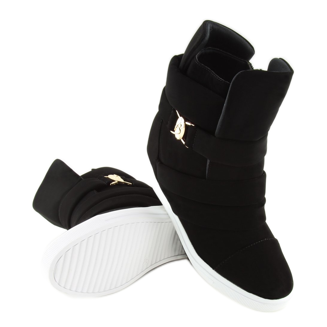 Les baskets noires pour femmes H6507 noires sont le choix parfait pour les femmes qui apprécient la combinaison de confort et de style. Ces chaussures modernes avec une cale cachée de 7 cm de hauteur mettront parfaitement en valeur votre silhouette et la rendront plus attractive. La tige ornée de larges rayures avec un élégant décor doré introduit une touche de luxe, et la semelle blanche contrastée donne un caractère sportif.
