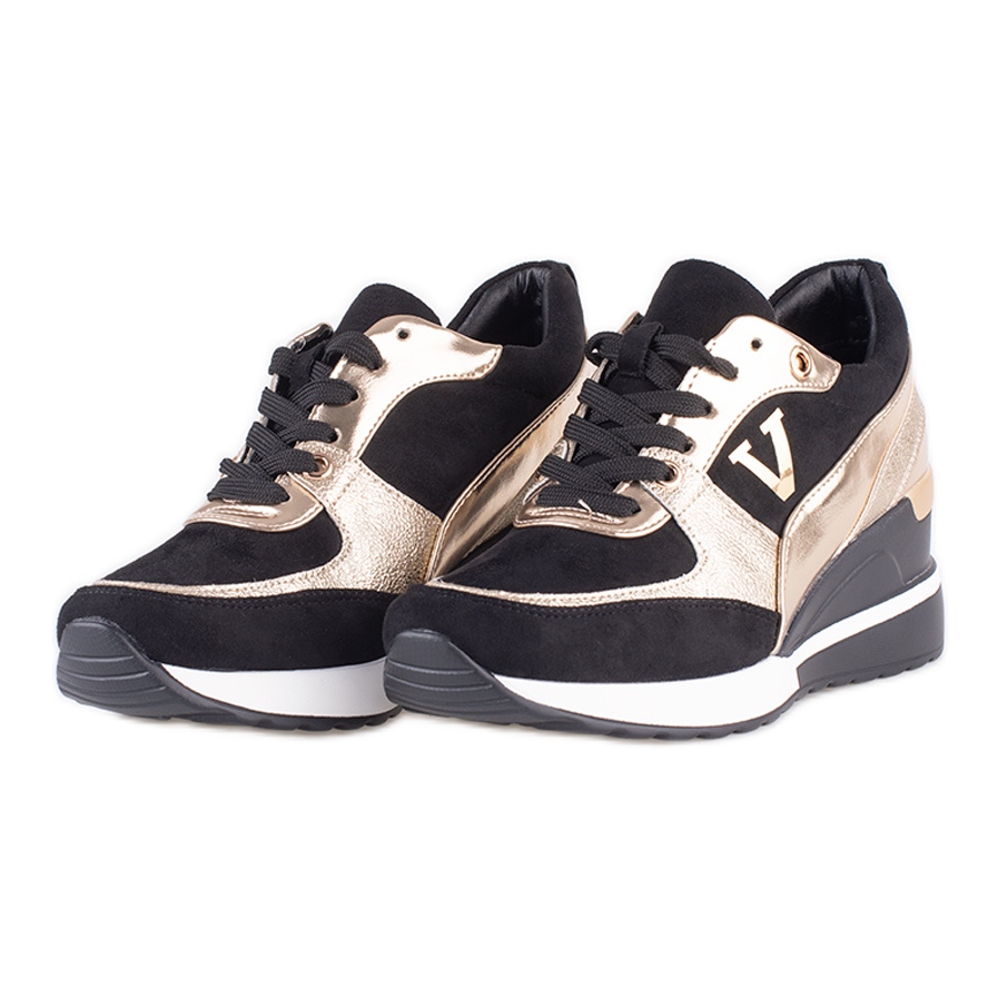 Vinceza Baskets femme Potocki noires et dorées à talon compensé