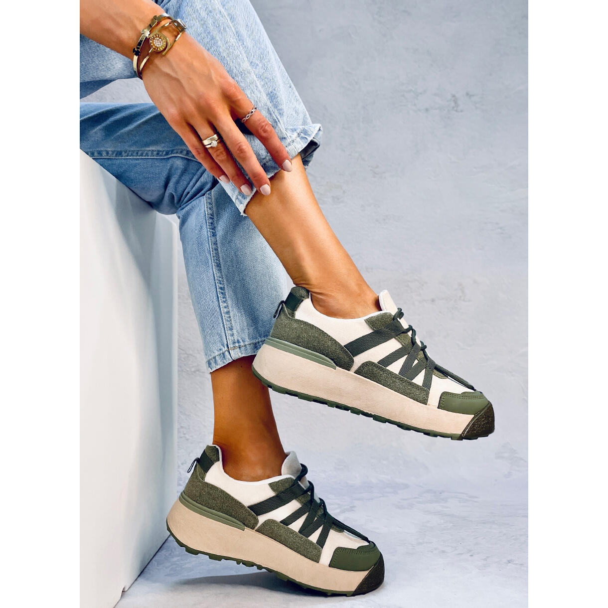 Nous vous présentons les baskets pour femmes Potts Green dans une version multicolore qui attirera certainement l'attention et vous fera vous sentir spéciale. Ces chaussures de sport à semelles hautes allient design tendance et confort, parfaites pour un usage quotidien, quelle que soit l'occasion.