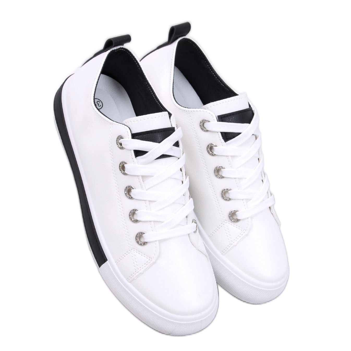 Nous présentons des baskets pour femmes dans des couleurs blanc et noires spectaculaires, qui sont une combinaison parfaite de classiques et des dernières tendances. Leur coupe intemporelle est enrichie par des inserts contrastés à la mode et des pierres élégantes et brillantes sur les boucles de ceinture, ce qui leur donne un caractère unique. Ces baskets ne sont pas seulement des chaussures, mais aussi un élément clé de chaque stylisation de la mode.