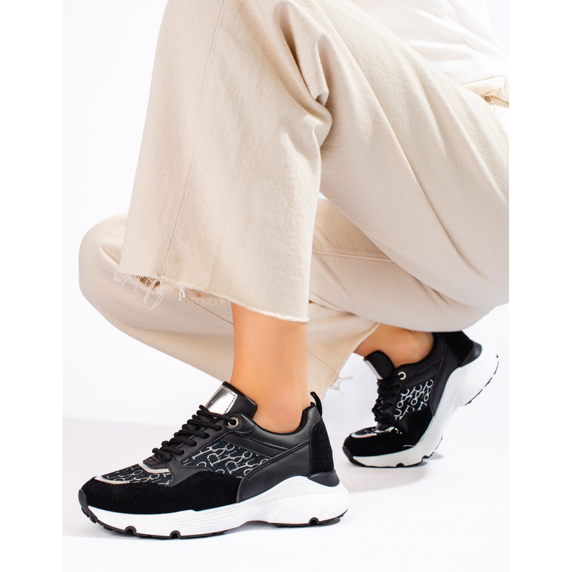 Les baskets noires Shelovet pour femme à semelle épaisse sont une combinaison parfaite de confort et de style raffiné pour les femmes qui apprécient un look tendance et le confort au quotidien. La combinaison de matières textiles et de similicuir de haute qualité crée une texture de chaussure à la fois durable et attrayante.