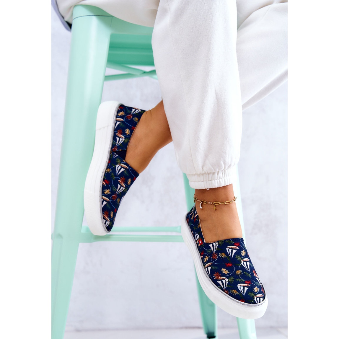 Détails: Baskets Femme Slip On Memory Foam Big Star JJ276016 Bleu Marine multicolore