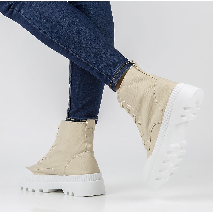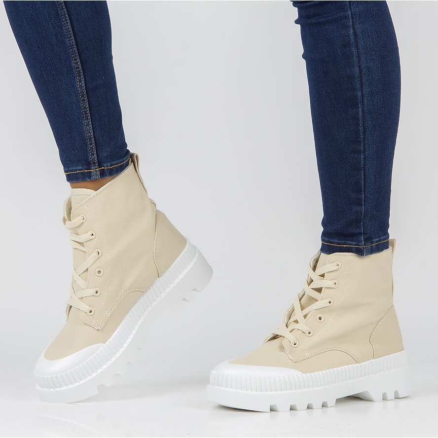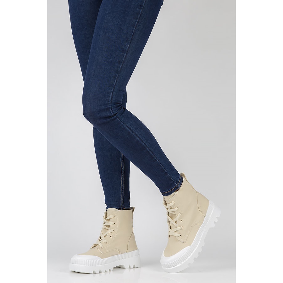 Les baskets Filippo se distinguent par leur couleur beige classique, qui s'adapte parfaitement à différents styles. La hauteur supérieure de 12 cm, associée à un bout rond, offre un maintien adéquat de la cheville, et la fermeture à lacets permet un ajustement parfait au pied. La semelle est en plastique avec une hauteur de plateforme de 2 cm et une hauteur de talon de 3,5 cm, garantissant un confort lors des activités tout au long de la journée.