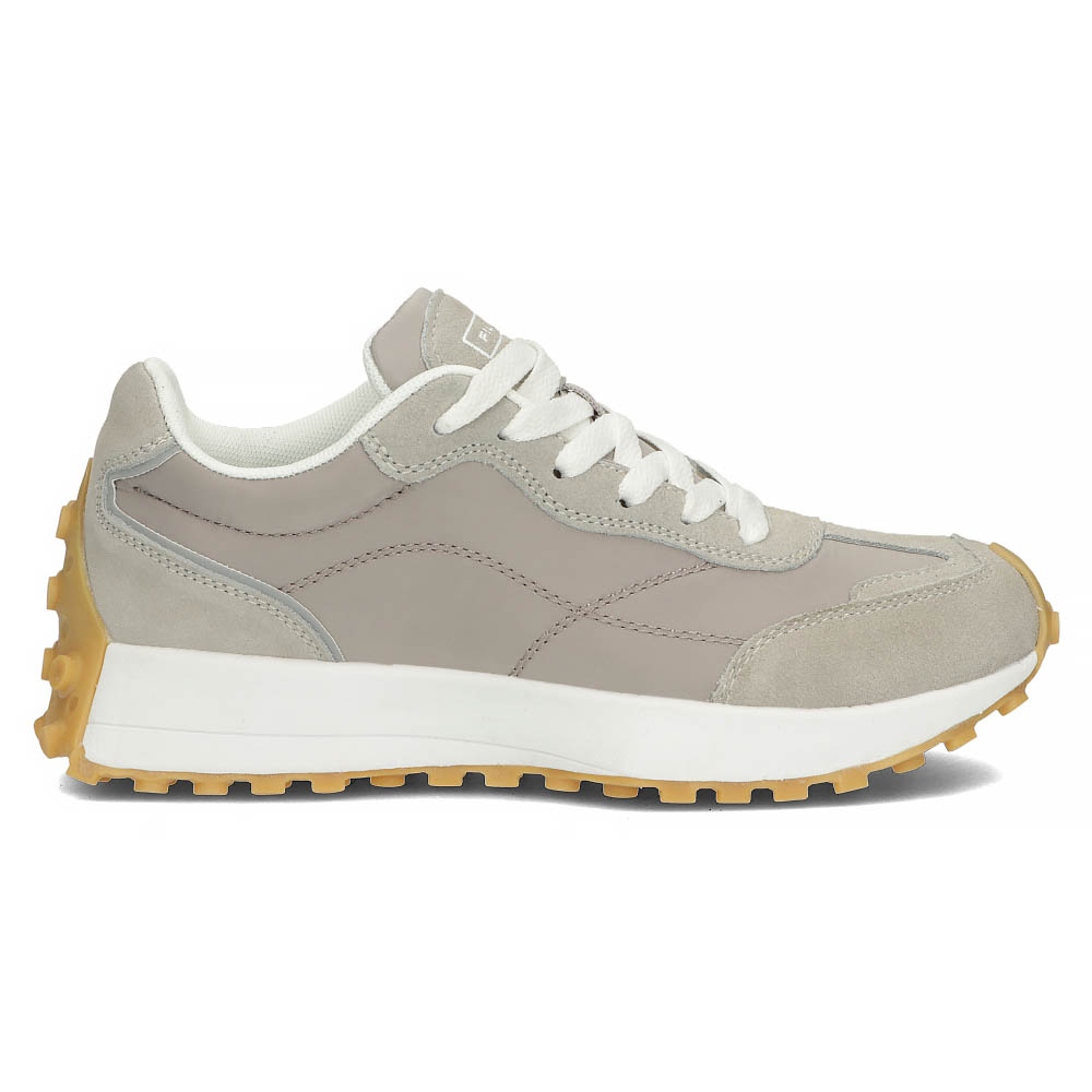 Fabriquées à partir de matériaux de haute qualité, les baskets sont dotées d'une semelle synthétique qui offre une excellente adhérence et une excellente absorption des chocs à chaque pas. Le nez rond et la tige basse (hauteur 8 cm) les rendent non seulement confortables, mais aussi extrêmement tendance. La fermeture à lacets garantit un ajustement parfait au pied, ce qui signifie que vous pouvez les porter toute la journée sans ressentir aucune gêne.