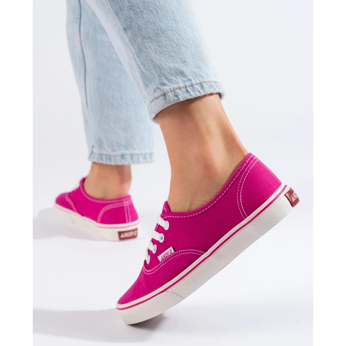 Ce produit décrit les baskets Andy Z fuchsia pour femmes. Il s'agit de chaussures entièrement réalisées en matière textile, parfaites comme chaussures légères au quotidien, adaptées aussi bien à l'école qu'au travail. Les chaussures ont des talons souples et des semelles en caoutchouc avec bande de roulement, assurant confort et stabilité pendant la marche. À l'intérieur se trouve un insert textile confortable.