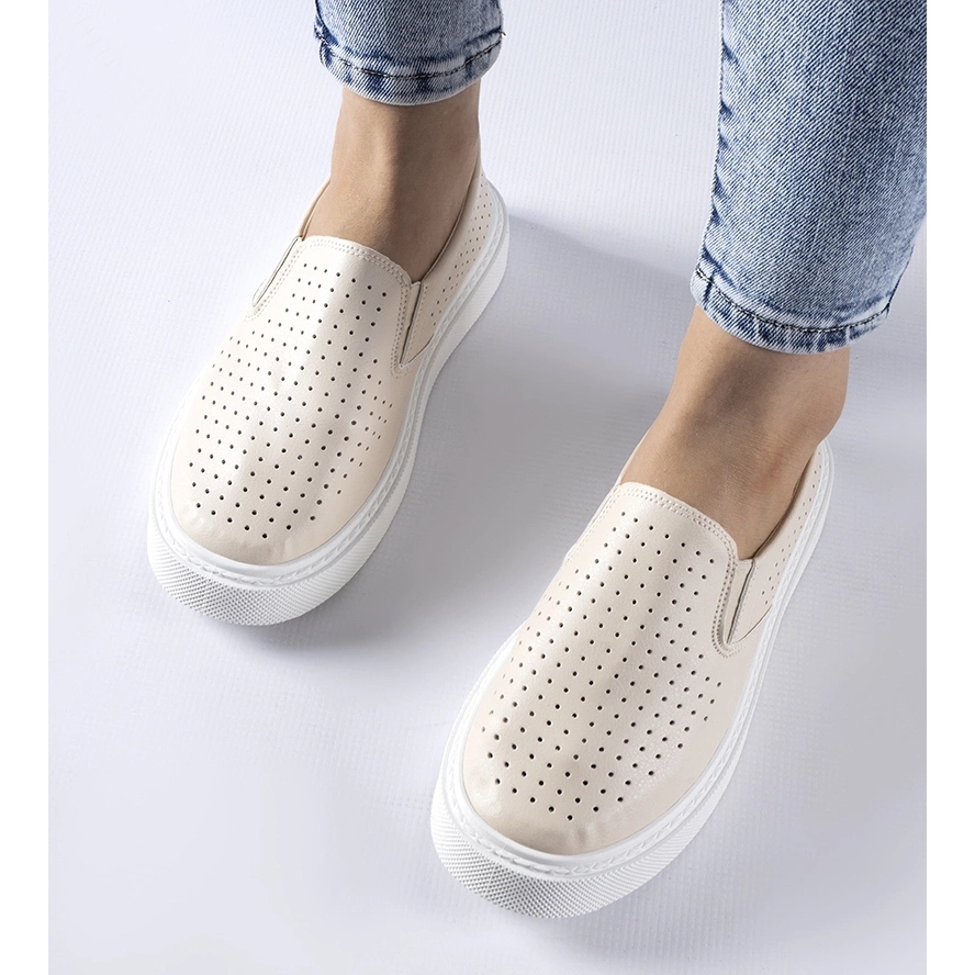 Ces charmantes baskets beige sont un complément parfait à une garde-robe d'été, qui sera idéale à la fois pour les stylisations quotidiennes et les tenues plus décontractées. En combinaison avec des robes, des shorts ou des jupes, ils seront un élément à la mode de chaque création d'été.
