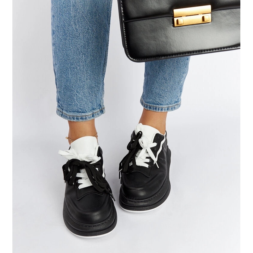 Nous présentons des baskets en noir et blanc Galdino dans une couleur noire classique, qui sera le complément parfait à toute stylisation de printemps. Ces chaussures de sport offrent non seulement un confort élevé, mais aussi se démarquer de la lumière avec une semelle en caoutchouc, ce qui assure une excellente élasticité. Le modèle bas des baskets les rend extrêmement polyvalents - ils sont parfaits pour les promenades quotidiennes et pendant la sortie du soir avec des amis.