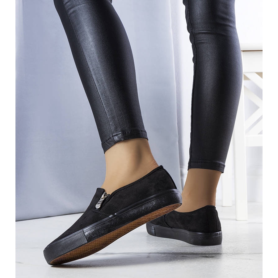 Les baskets noires de Gary se distinguent par une décoration subtile sous la forme d'une petite fermeture éclair sur l'extérieur, qui leur apporte élégance et caractère. La hauteur des chaussures n'est que de 10 cm, ce qui les rend basses et très confortables à porter. De plus, le bout rond et la semelle en caoutchouc assurent confort et stabilité à chaque pas.