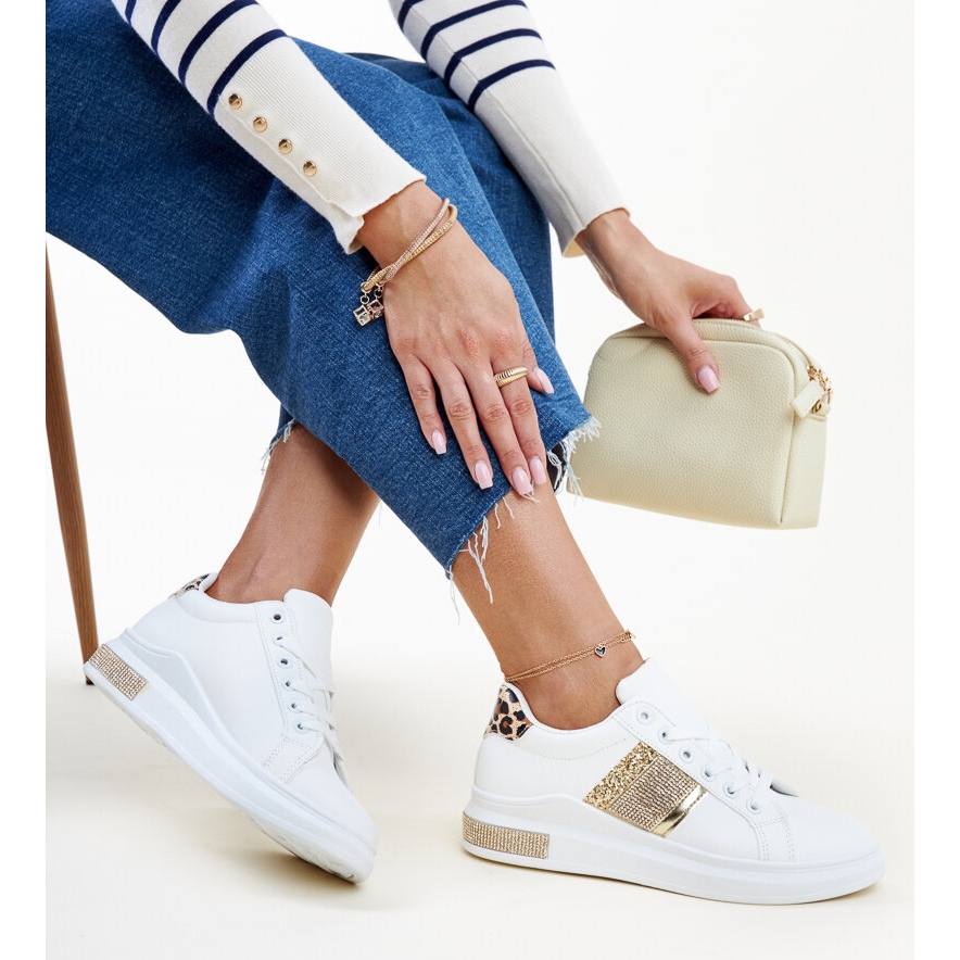 Inna marka Baskets Giulia blanches et dorées avec strass