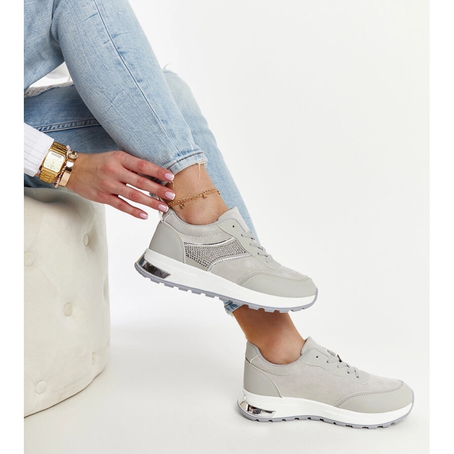 Leur design moderne avec un nez rond les fait bien se mélanger avec diverses stylisations d'été, du décontracté à plus élégant. La couleur grise, avec des accents en argent délicats, s'inscrit dans les tendances actuelles et la palette de couleurs modérée vous permet de combiner des baskets avec des jeans et des robes aériennes.