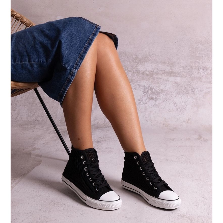 - Modèle: B392 Baskets hautes ajourées noires
