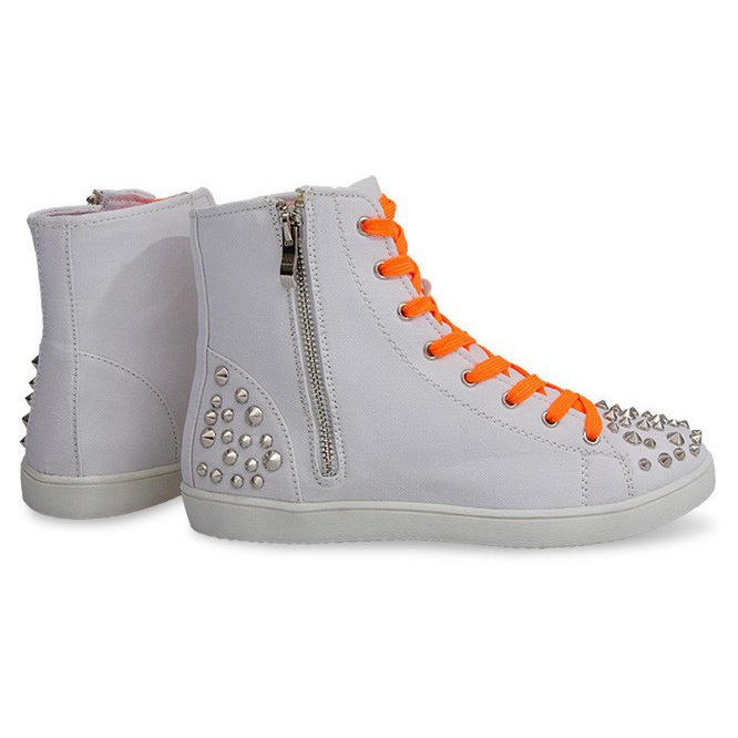 Voici votre nouvelle paire de chaussures préférée : les baskets montantes à clous, modèle 6563, de couleur blanc neige, qui sont la quintessence du style urbain. La combinaison du cuir écologique avec des détails métalliques accrocheurs garantit un look distinctif et attirera l'attention dans la rue.