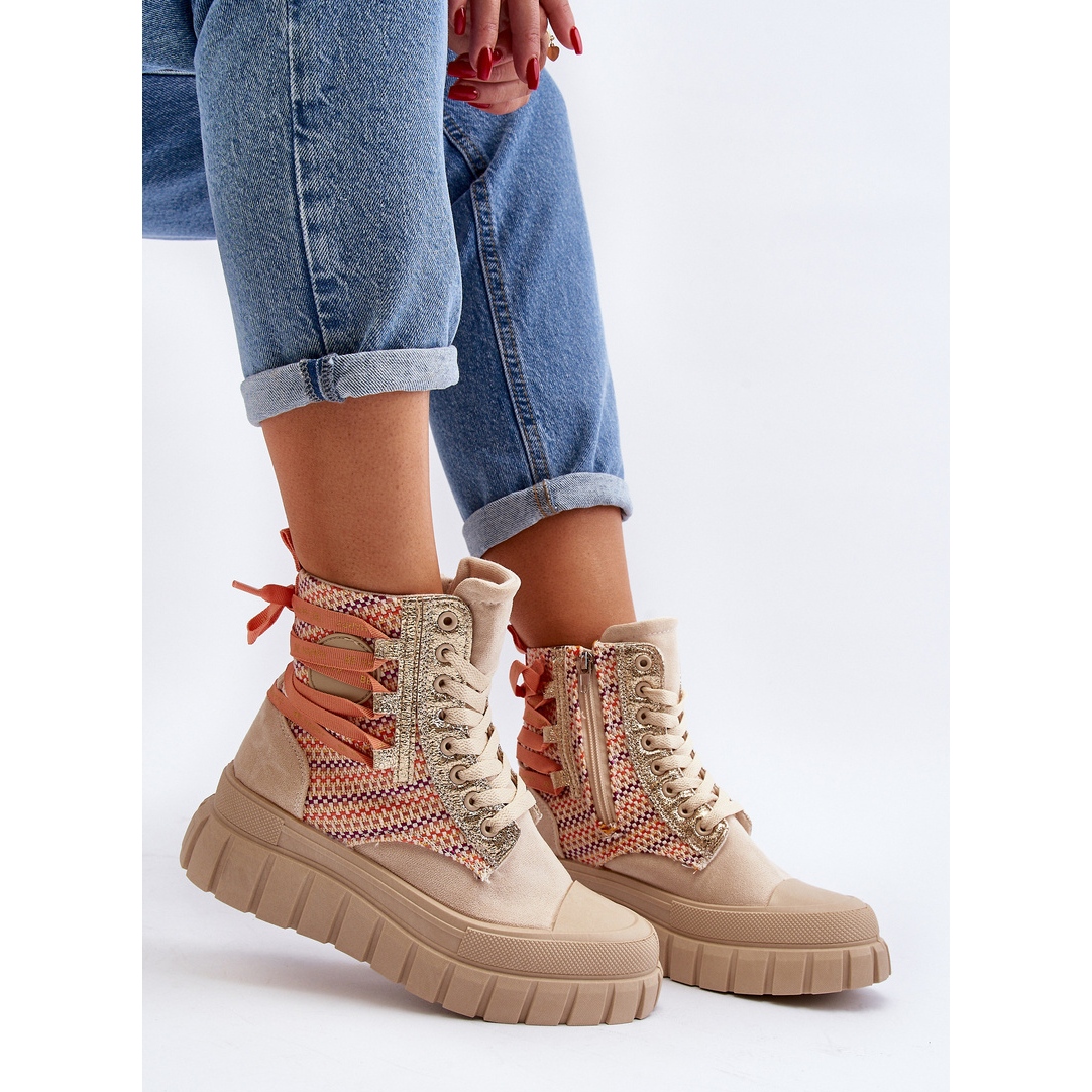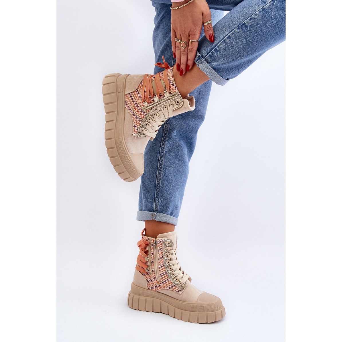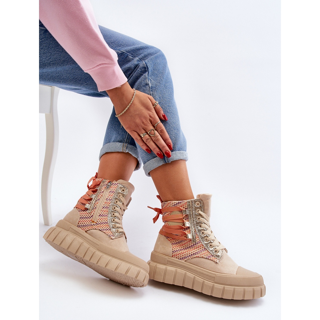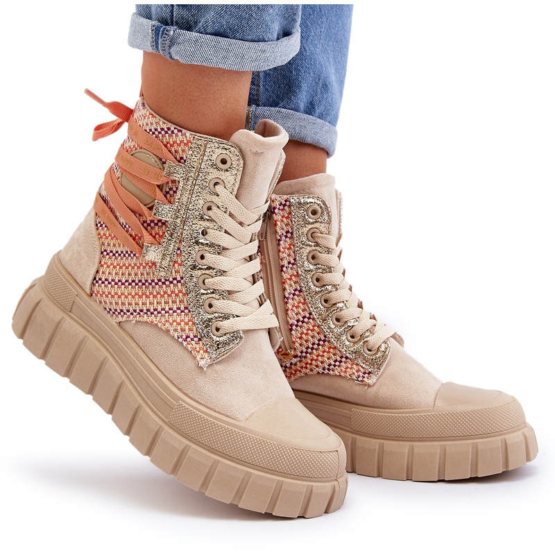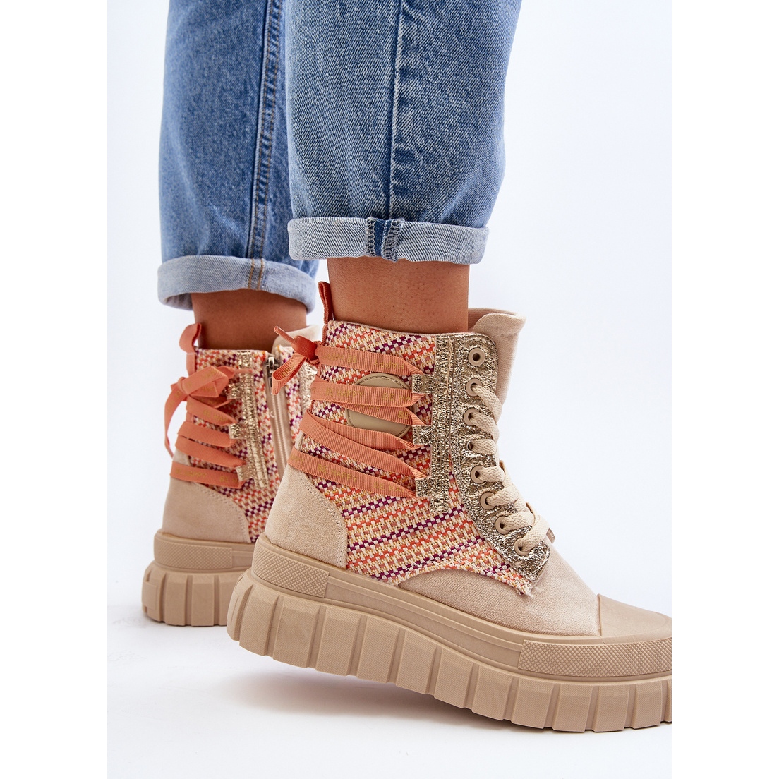 Détails: Baskets hautes beiges pour femmes sur une plateforme massive Kernia
