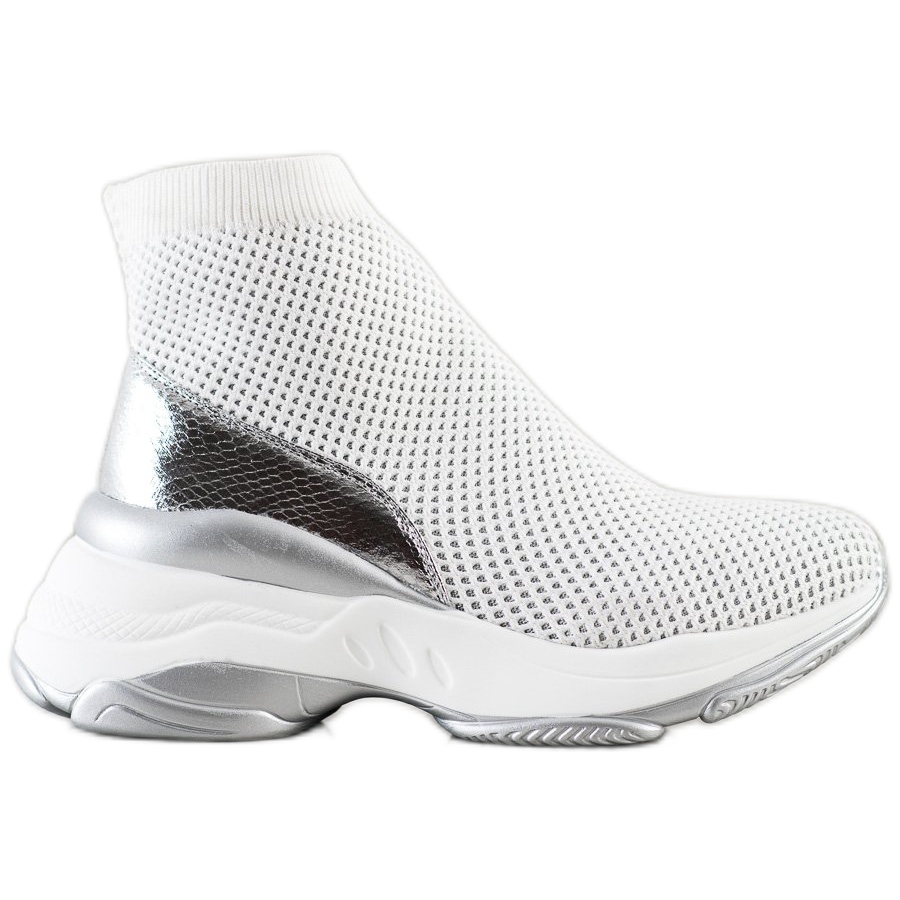 La plateforme blanche de 5 cm de hauteur fonctionne avec une semelle argentée avec bande de roulement, qui non seulement améliore l'esthétique de la chaussure, mais assure également une bonne adhérence sur diverses surfaces. La fermeture à enfiler permet d'enfiler et d'enlever rapidement les chaussures, ce que toute femme active appréciera certainement.