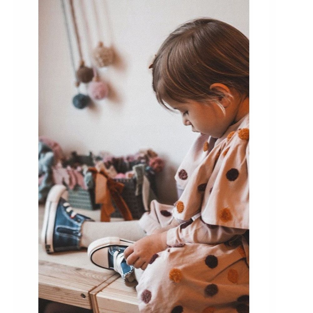 Les baskets sont fabriquées dans des matériaux durables, résistants aux facteurs externes, ce qui en fait un compagnon idéal lors des aventures quotidiennes. Leur conception unique garantit une adaptation parfaite à la forme du pied de l'enfant et une semelle plate et antidérapante de 2 cm de hauteur assure confort et sécurité lors de la course ou du saut.