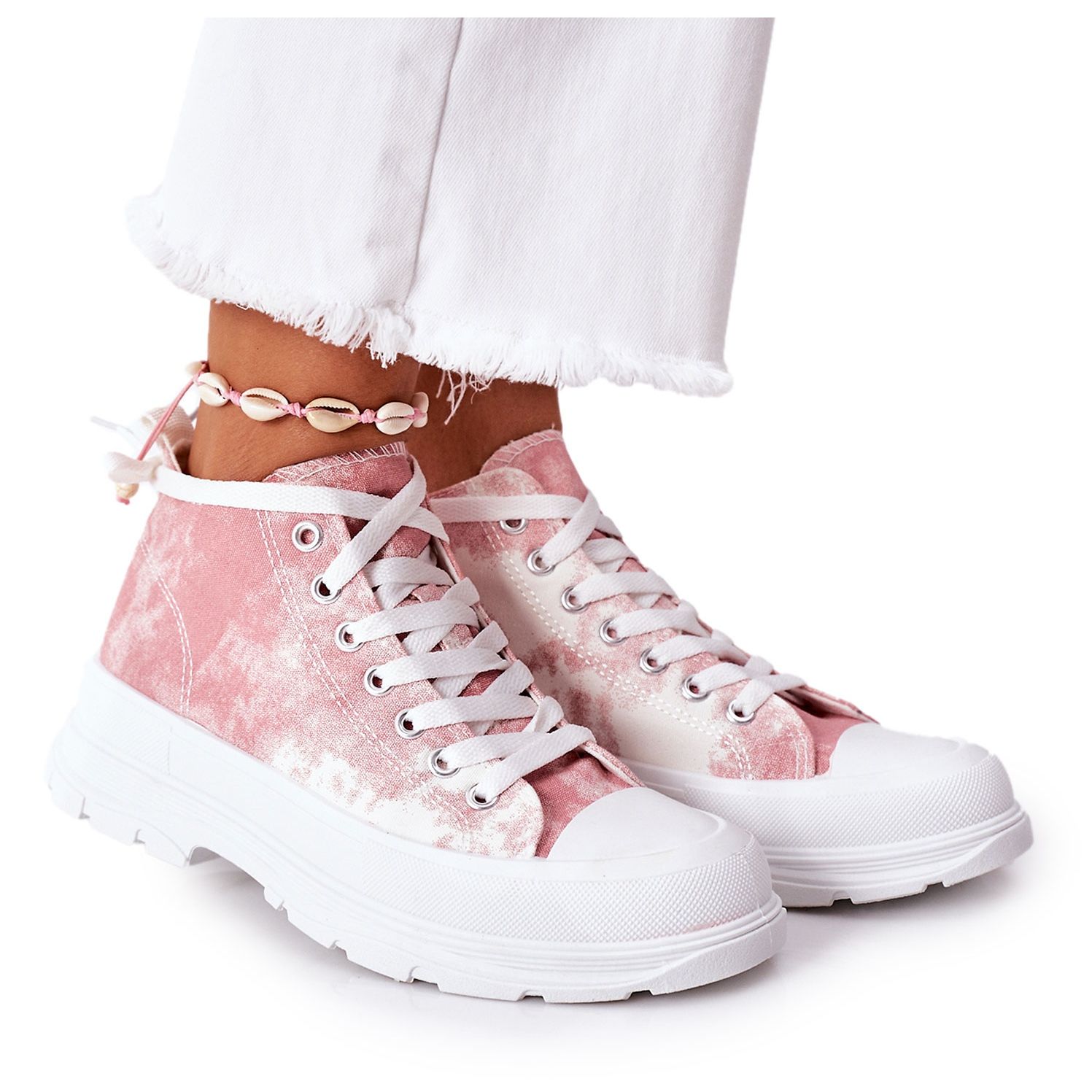 FJ1 Baskets Hautes Roses Sur Grande Semelle Avec Effet Trissy Tie-Dye blanc