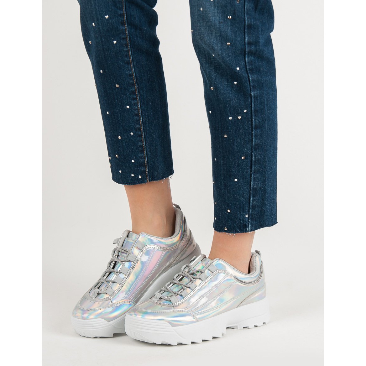 Détails: Baskets Holo Laquées Argent gris