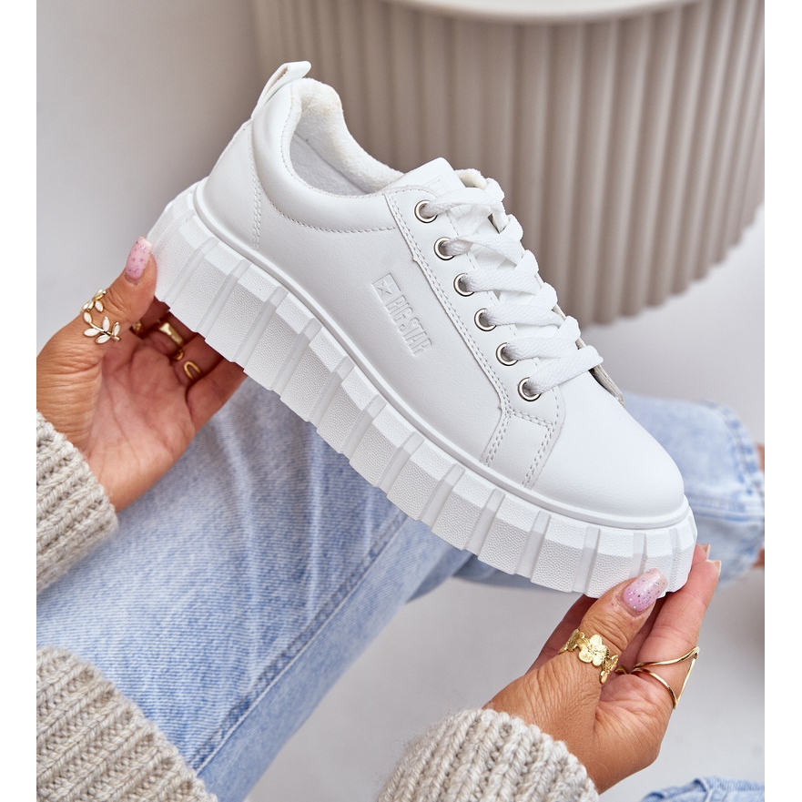 Sneakers isolés pour femmes Big Star MM274616 en blanc est le choix parfait pour les femmes qui veulent combiner le style à la mode et le confort. Ces baskets fixées sur une plate-forme de 3,5 cm de haut seront un complément parfait à toute stylisation décontractée, ce qui lui donne un personnage moderne.