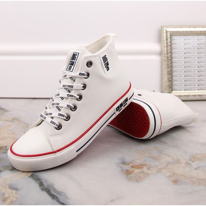 High Women's Big Star Sneakers dans INT1898A dans une couleur blanche universelle, conçue pour des jours plus frais. Modèle avec des attaches en dentelle, avec une doublure textile réchauffante avec la fourrure - Combinez le confort et le style décontracté tous les jours.