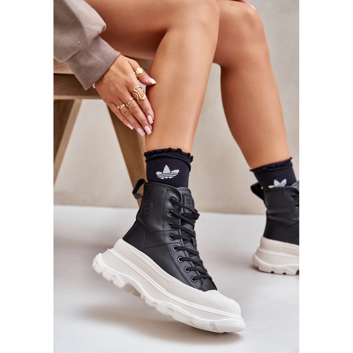 Découvrez les baskets isolées en cuir sur la plate-forme massive de Big Star OO274A599 dans une couleur noire classique. Ces chaussures uniques, faites en cuir naturel de haute qualité, combinent le design à la mode avec un confort, idéal pour les jours plus frais.