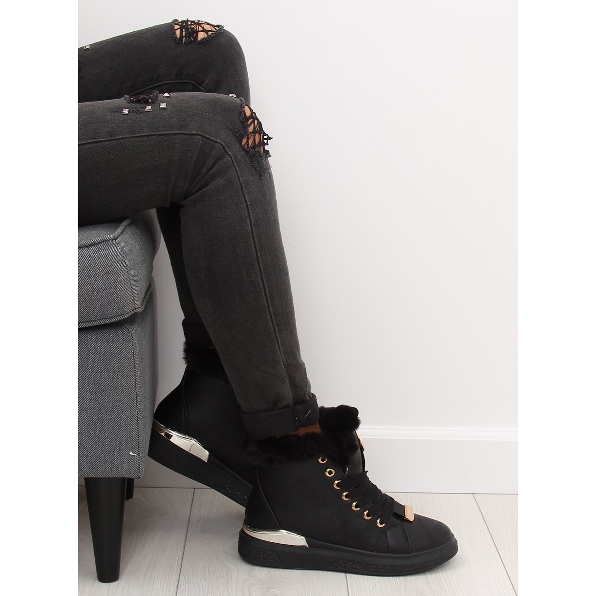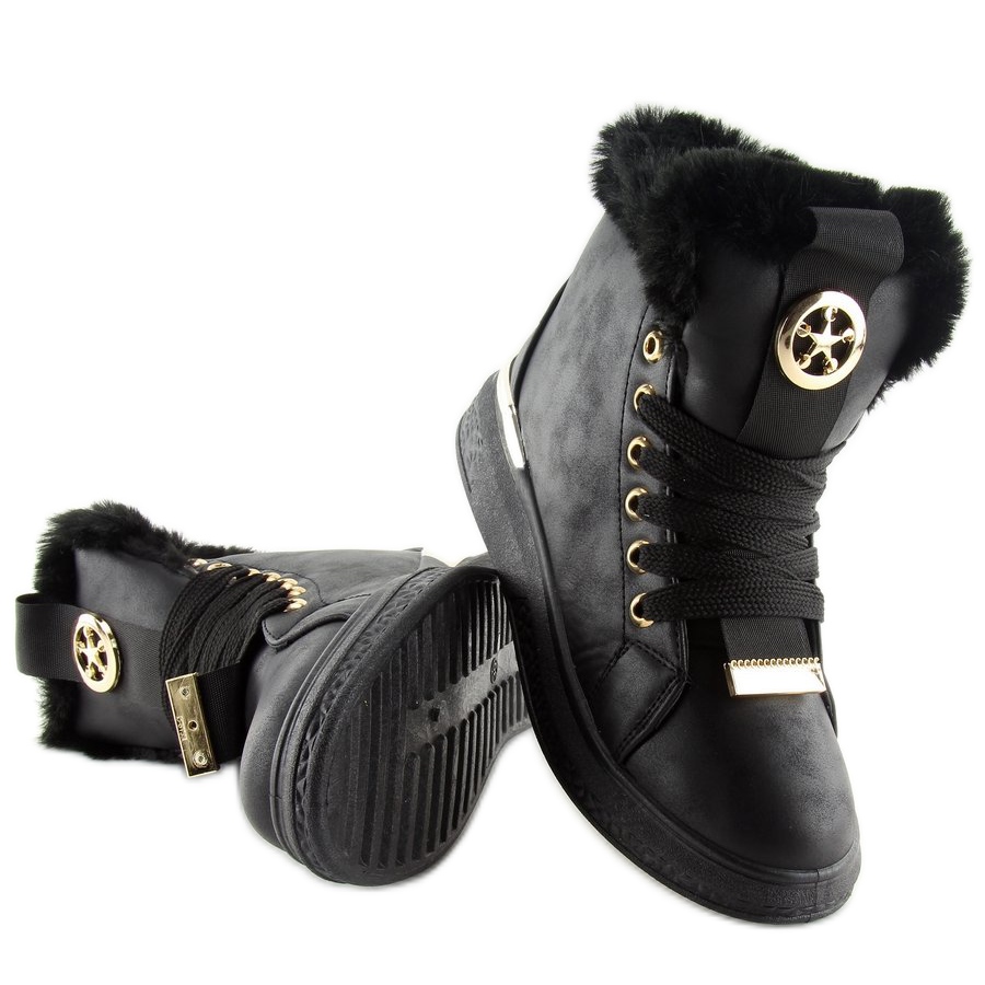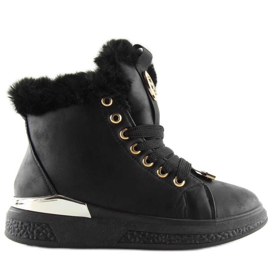 Leur intérieur doublé de fourrure douce protège efficacement vos pieds du froid, ainsi même les jours les plus glacials ne vous feront pas peur. Des accents dorés décoratifs et une plaque argentée ajoutent de l'élégance aux baskets, et une fourrure élégante autour de la tige leur donne un caractère unique.