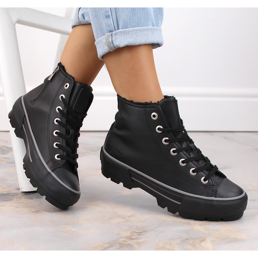 Sneakers isolés sur la plate-forme Big Star MM274039 - noir, haut, élégant et pratique. Parfait pour l'automne et l'hiver, ils combinent un personnage sportif avec style urbain.