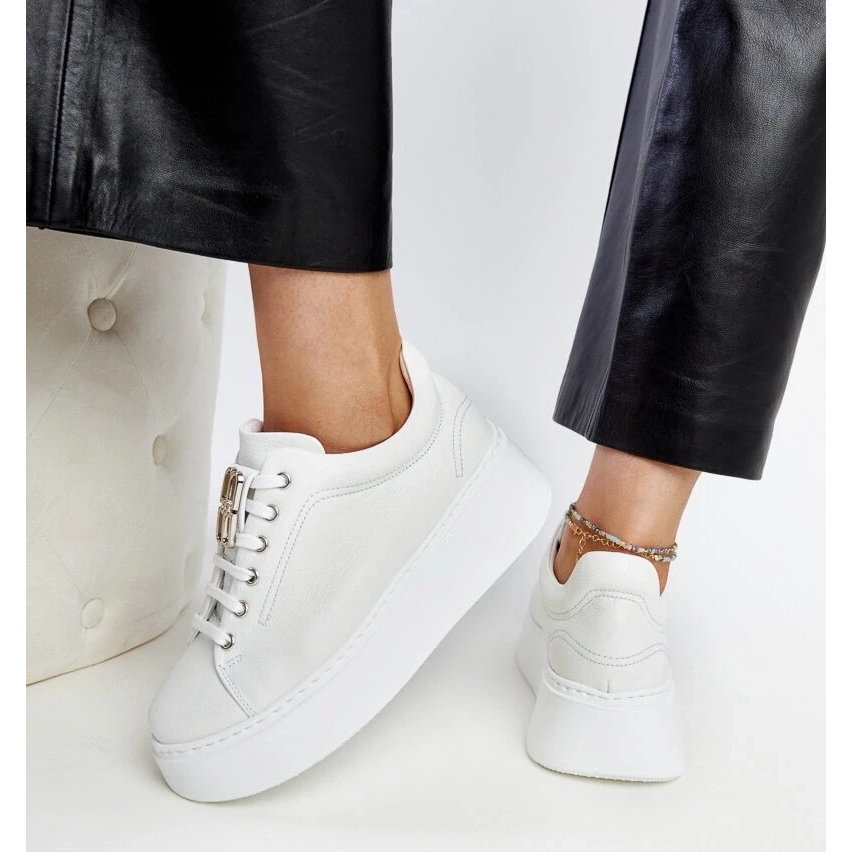 Ces baskets sont un excellent choix pour la jeune génération, qui valorise le réconfort et l'apparence à la mode. Grâce à eux, vous pouvez créer de nombreux styles différents, à la fois tous les jours et pour des occasions spéciales. Sneakers blancs Karino est un incontournable pour les jours chauds!
