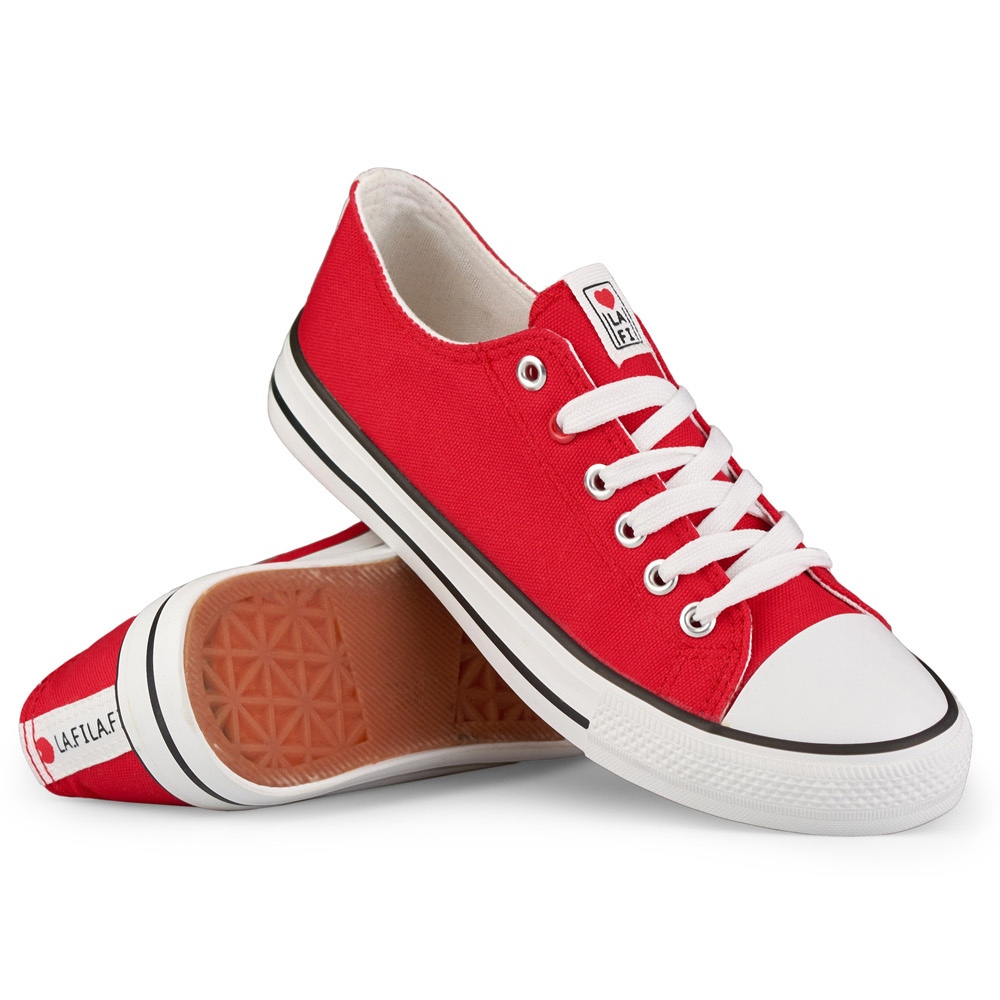 Le produit est des baskets pour femmes de La.Fi dans une couleur rouge distinctive. Conçu pour la femme moderne à porter pendant les mois chauds, du printemps à l'été. Les chaussures ont un bout rond et sont fabriquées en matière textile, ce qui garantit un confort d'utilisation. Une semelle en caoutchouc solide assure la stabilité sur tout type de surface. Les baskets n'ont aucune fonctionnalité supplémentaire et leur design est simple, sans aucun motif dominant. Elles sont fermées par des lacets, ce qui permet un ajustement parfait au pied. Les baskets sont dotées d'un insert textile qui augmente le confort de port. Le produit est neuf, livré dans l'emballage d'origine du fabricant. Sa faible hauteur le rend léger et confortable à porter toute la journée. Le produit appartient à la collection KeeShoes. Le code du fabricant est 224017. Le poids du produit, emballage compris, est de 0,8 kg.