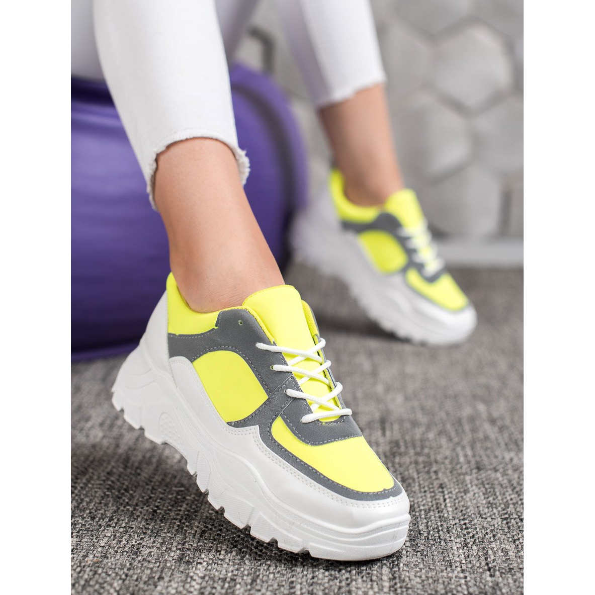 Détails: SHELOVET Baskets lacées à la mode blanche jaune