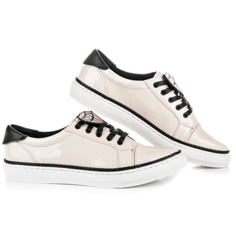 Vous recherchez des baskets tendances et originales qui complèteront votre style de tous les jours ? Les baskets Betler sont un excellent choix pour les femmes qui souhaitent se démarquer. Fabriquées en éco-cuir verni dans une légère nuance de marron, ces chaussures allient élégance et style décontracté, ce qui les rend bien assorties à une variété de tenues.