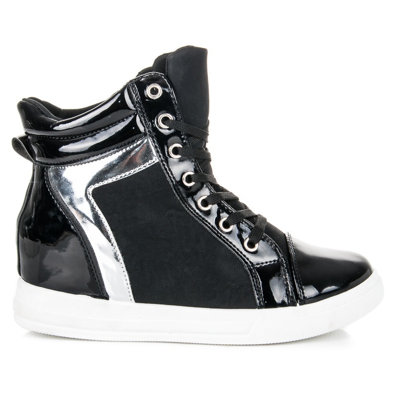 Nous vous présentons les baskets noires vernies du fabricant Emax - le choix parfait pour les femmes modernes qui apprécient le style et le confort au quotidien. Ce modèle appartient à la catégorie des baskets pour femmes, alliant élégance avec une touche de décontraction sportive.