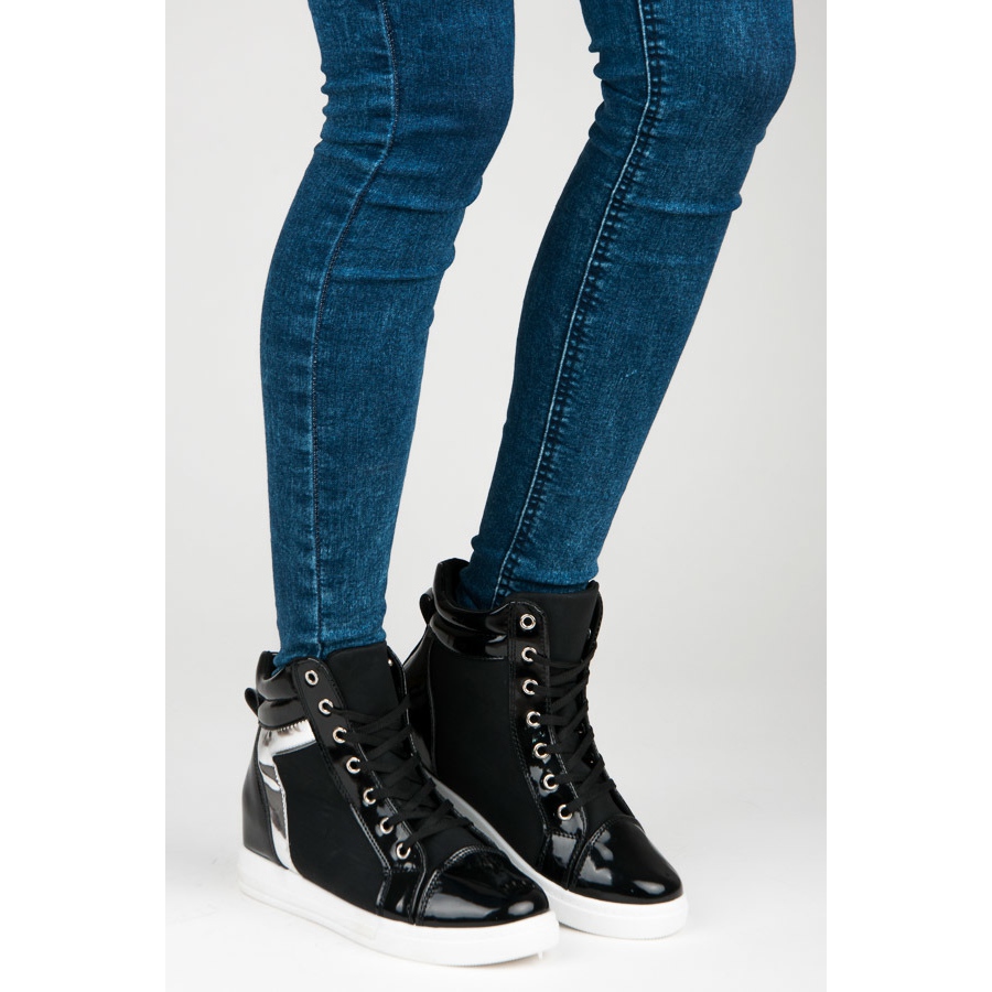 La hauteur du talon de 8 cm ajoute une touche d'élégance, ce qui rend ces baskets parfaites aussi bien pour un usage quotidien que pour des occasions spéciales. Grâce à la couleur noire universelle, ce modèle peut être facilement combiné avec une variété de vêtements, des jeans aux jupes en passant par les robes.