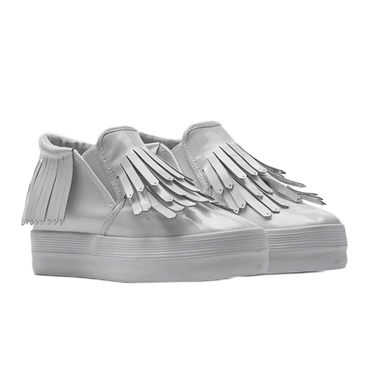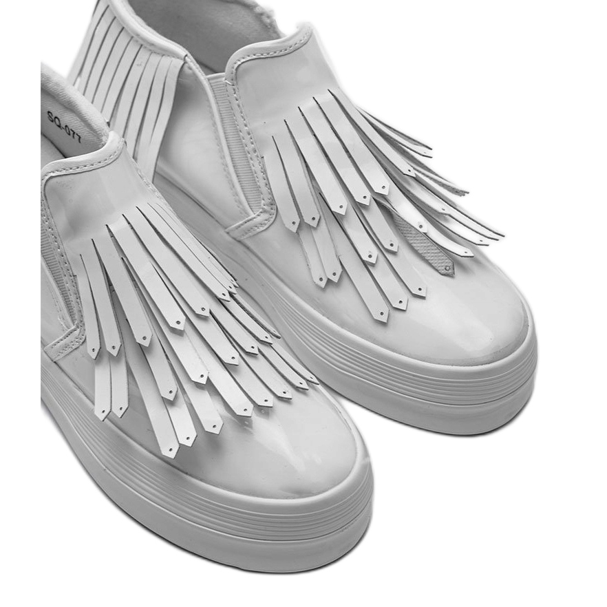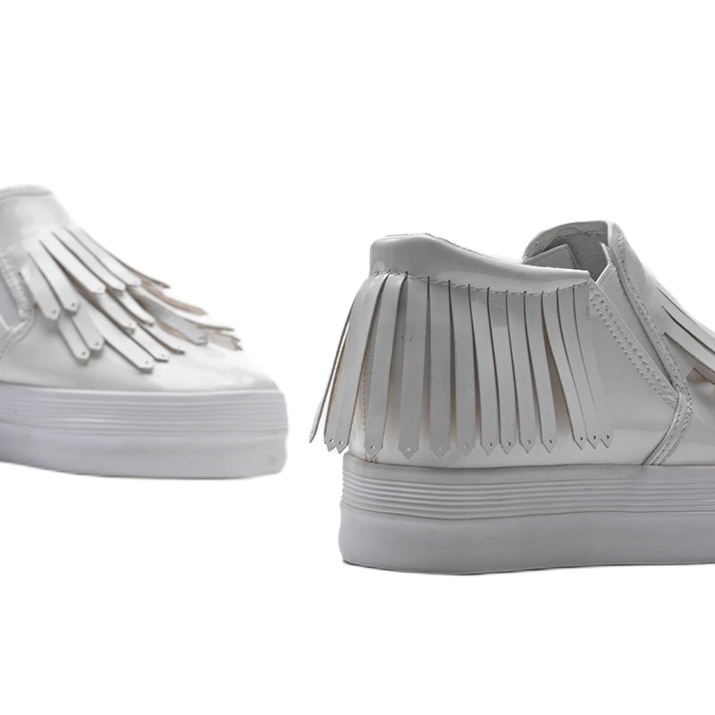 Découvrez une nouvelle dimension de la mode avec les baskets compensées vernies KB-SQ-077 dans une élégante couleur blanche. Ces chaussures uniques sont une combinaison de confort et d'originalité qui complèteront parfaitement n'importe quel style. Leur cale de 6 cm de hauteur ajoute une hauteur subtile tout en assurant un confort au porté.