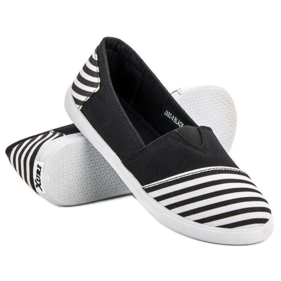 Leur design caractéristique se distingue par une intéressante combinaison de noir uniforme avec des rayures noires et blanches situées sur la pointe et autour du talon, ce qui les rend à la mode et originales. La fermeture à enfiler assure un enfilage et un retrait faciles et rapides, et le contrefort de talon souple assure un confort de port.