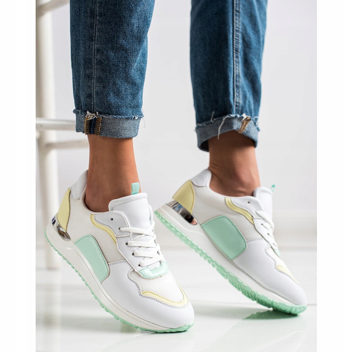 Détails: SHELOVET Baskets légères et élégantes blanche vert jaune