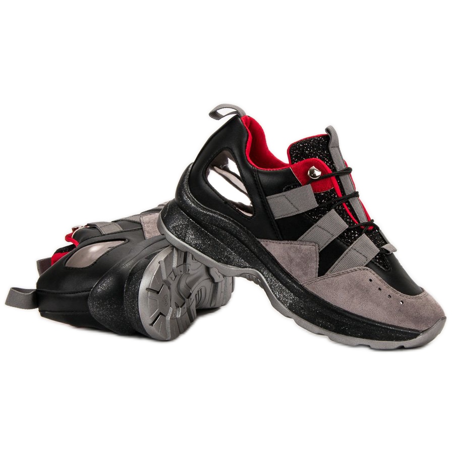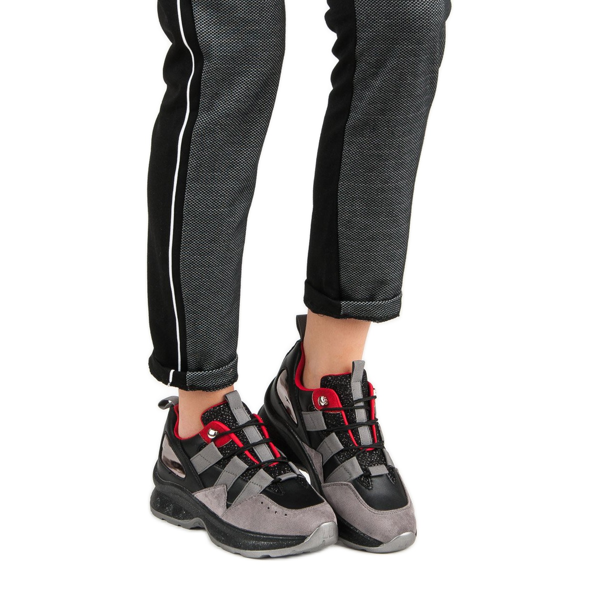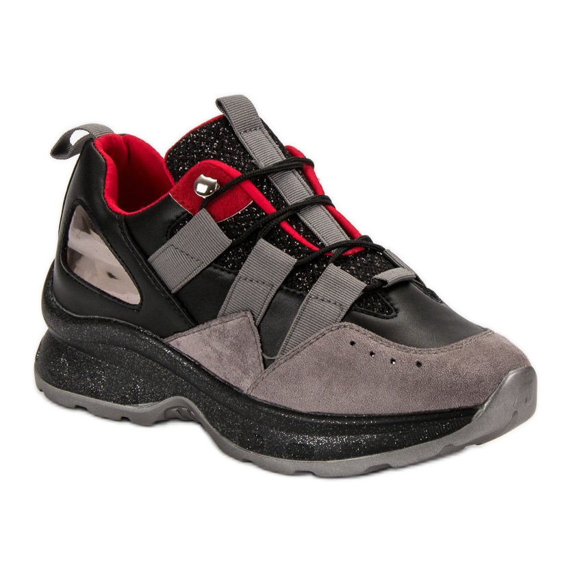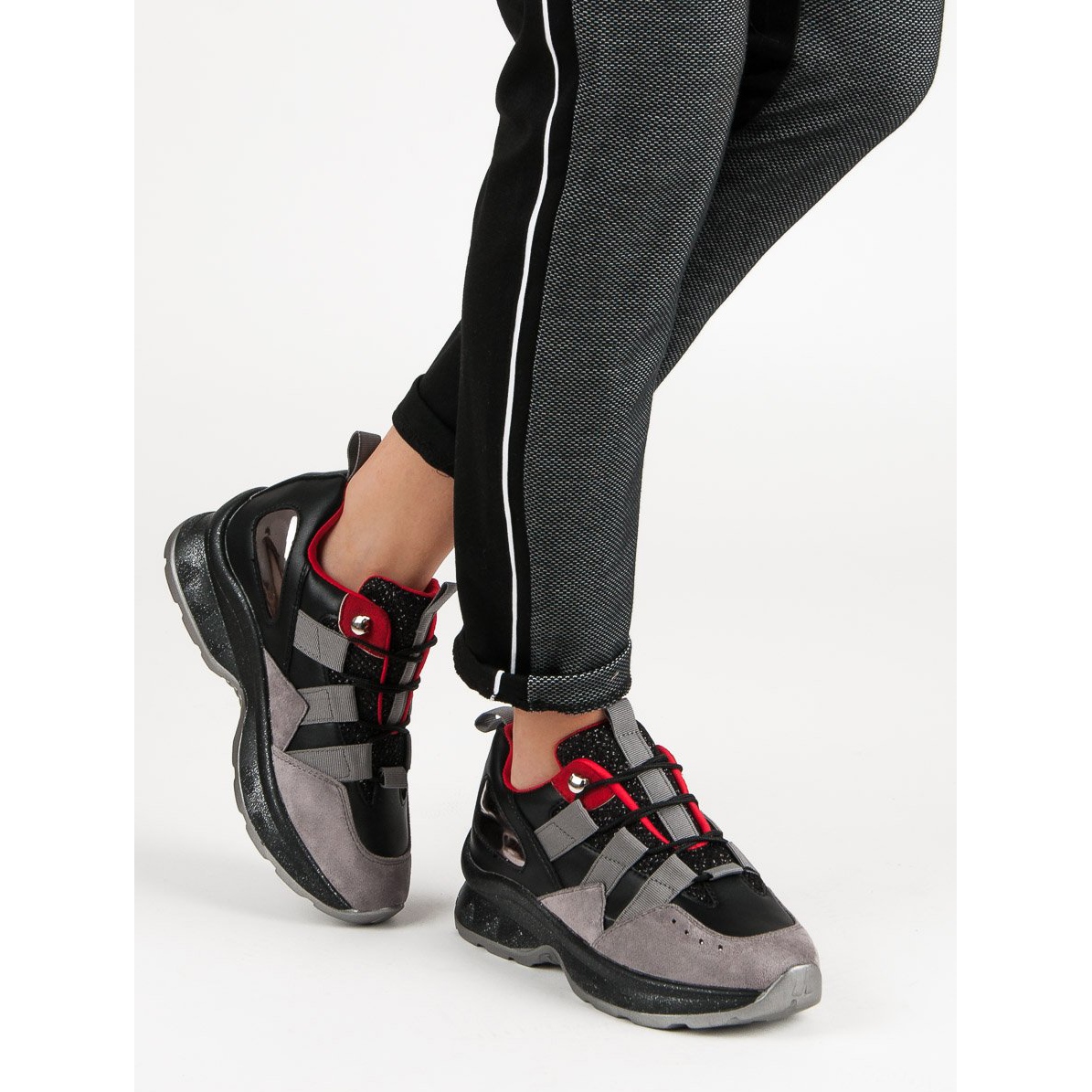 Vous recherchez les chaussures parfaites qui allient confort et style moderne ? Les baskets Light VICES noires sont une proposition adaptée à vos besoins ! Fabriquées en cuir écologique de haute qualité, avec des inserts en matériau accrocheurs imitant un miroir, ces chaussures de sport attirent l'attention et se démarquent des autres modèles.