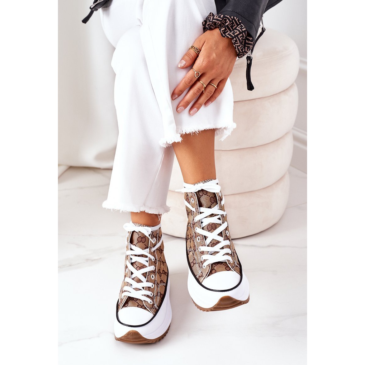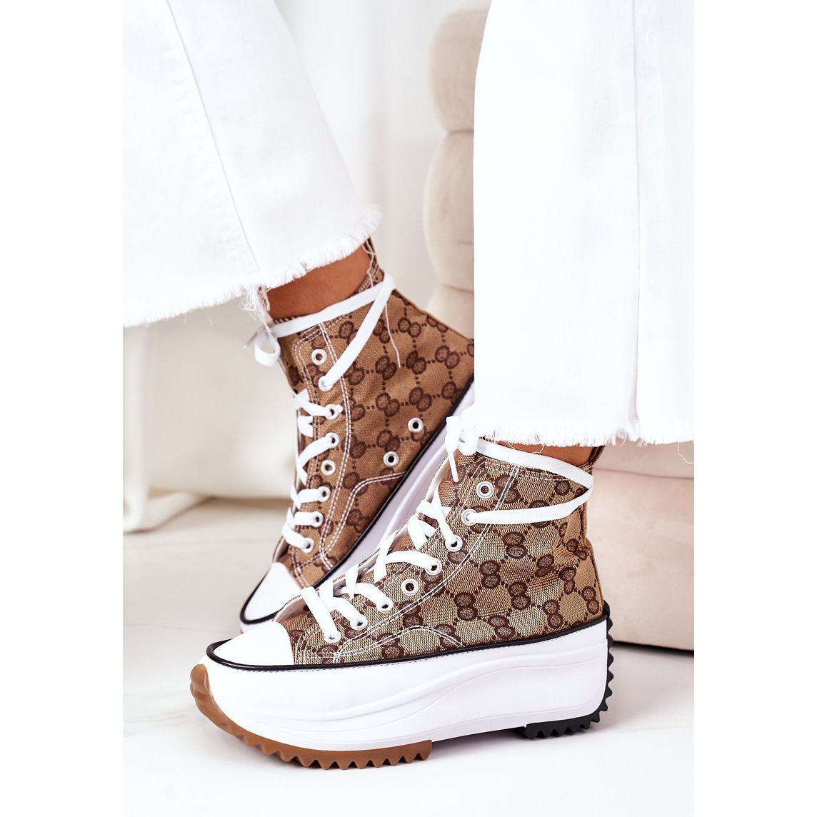 Baskets à plateforme FJ1 Logged Brown Electric Love est une proposition idéale pour les femmes qui apprécient un look à la mode et un confort de port. Ces baskets uniques se distinguent par une jolie combinaison de couleurs blanc et marron, qui s'intègre parfaitement dans les dernières tendances.