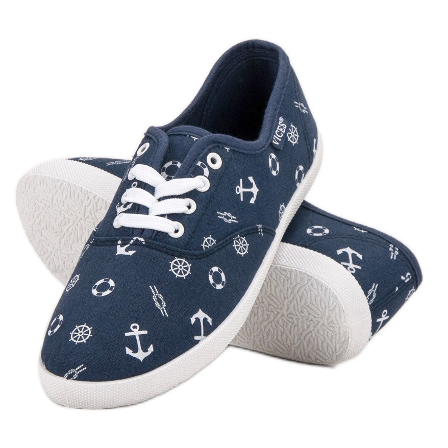 Les baskets bleues VICES sont le choix parfait pour les femmes qui apprécient l'apparence à la mode et le confort. Ces chaussures élégantes en tissu de haute qualité attirent l'attention avec leur motif nautique, ce qui en fait un accessoire parfait pour les journées à la plage et les voyages de vacances.