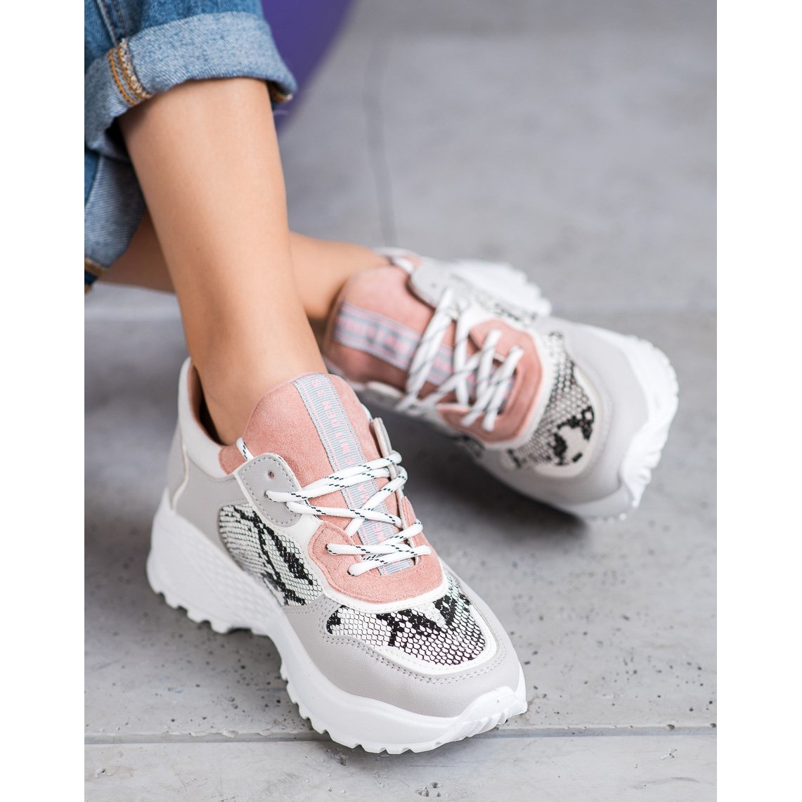 Ce modèle a un style sportif et tendance et se distingue par sa faible hauteur - avec une plateforme de 5 cm et un talon souple intégré. Le bout rond et la fermeture à lacets ajoutent confort et fonctionnalité.