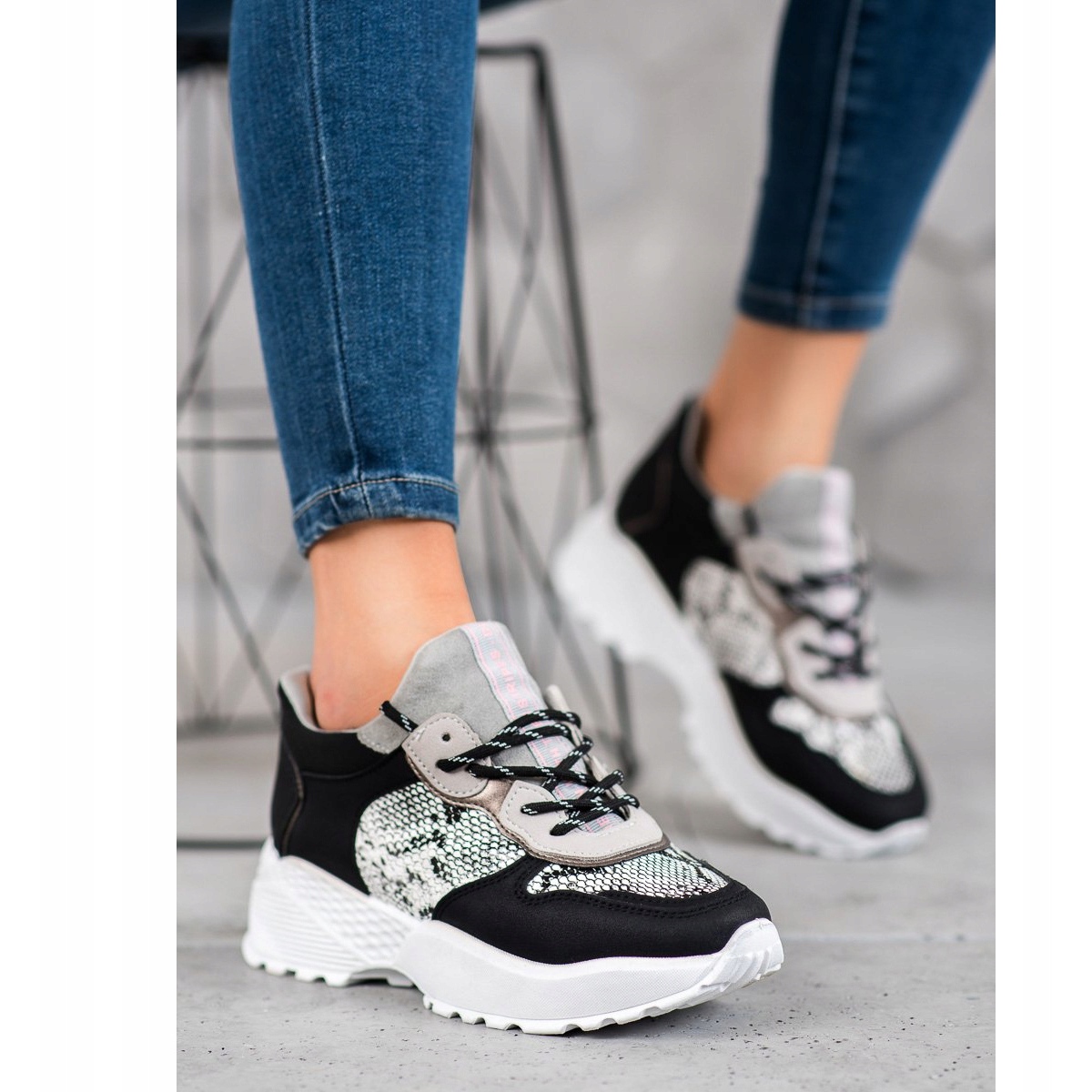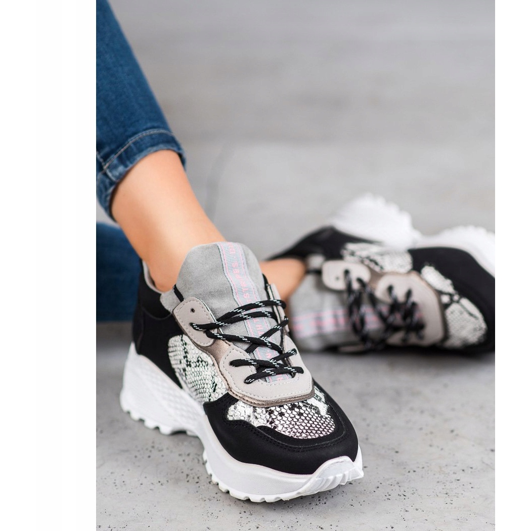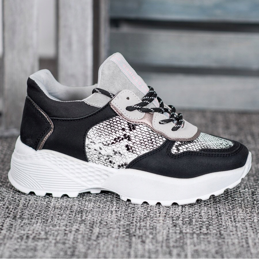 Les baskets élégantes MCKEYLOR en noir sont une option idéale pour les femmes qui souhaitent allier confort et look à la mode. Ces chaussures uniques se distinguent par un imprimé serpent unique, qui leur confère un caractère moderne et s'intègre en même temps parfaitement dans différents styles.