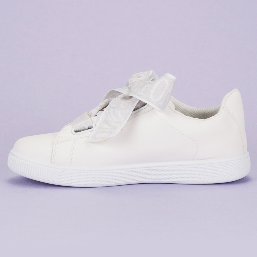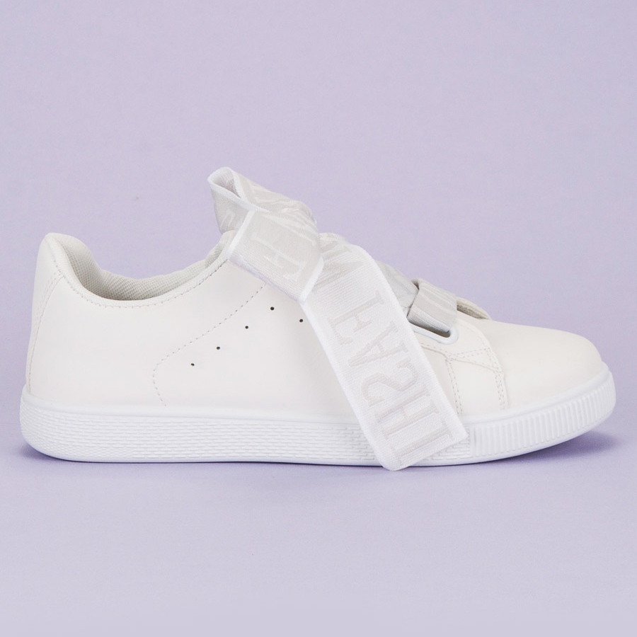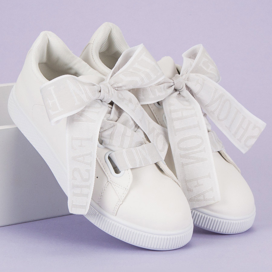 Les chaussures sont équipées d'une semelle en caoutchouc avec bande de roulement, qui garantit une excellente adhérence et un excellent confort lors de longues promenades, courses ou week-ends hors de la ville. Le caractère sportif des baskets est souligné par le laçage avec un épais ruban blanc, qui permet de nouer un joli nœud. Il y a une inscription « FASHION » sur le ruban, qui ajoute une touche de modernité et de fraîcheur.