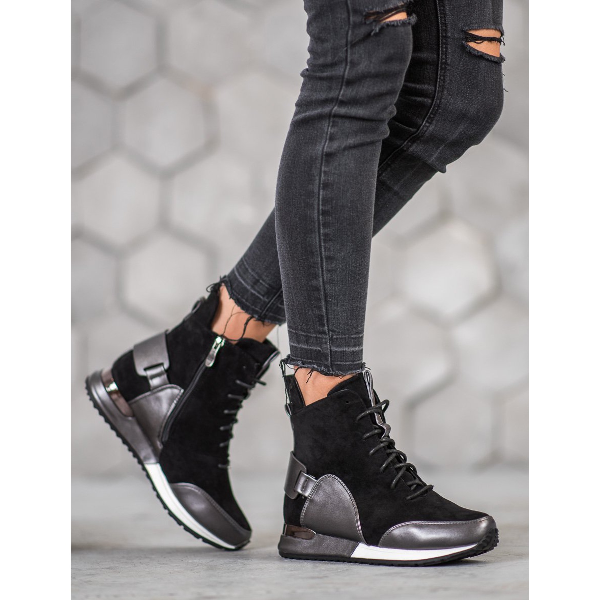 L'avantage unique du modèle est la plateforme de 3 centimètres, qui ajoute de la légèreté à la silhouette et assure en même temps un confort de marche. La tige plus haute, de 16 cm de haut, protège efficacement du froid et de l'humidité, ce qui rend les baskets parfaites pour les journées les plus froides.