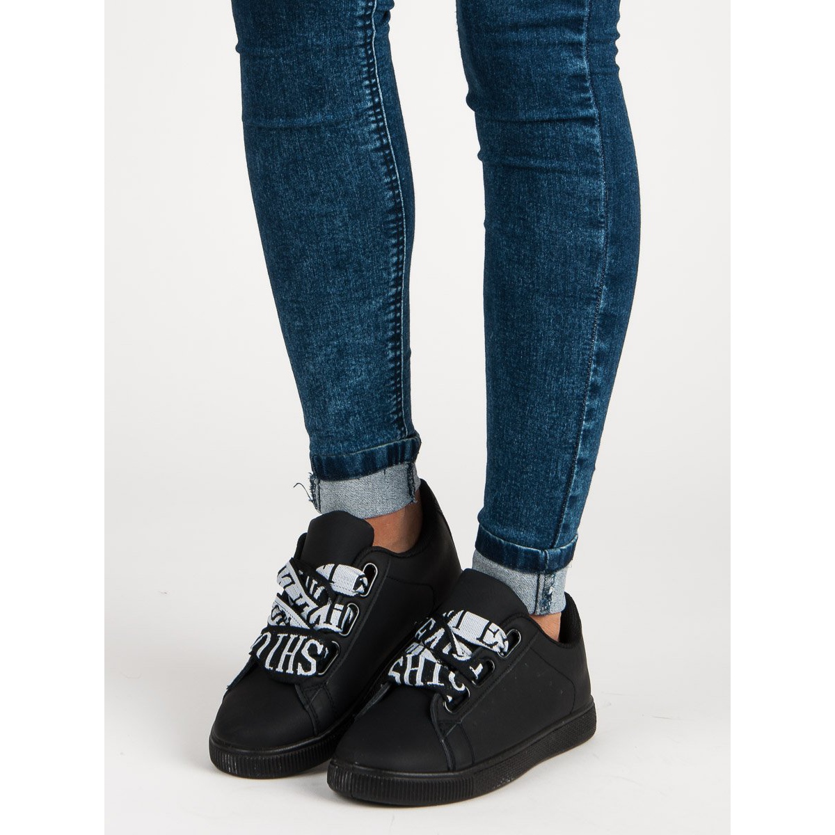 L'un des plus grands avantages de ces baskets est leur polyvalence. Grâce à leur couleur noire classique, ils s'accordent parfaitement avec diverses tenues - des jeans de tous les jours aux robes aérées. Les imprimés sur les lacets sont un accent intéressant qui attire le regard et distingue les chaussures des modèles traditionnels.