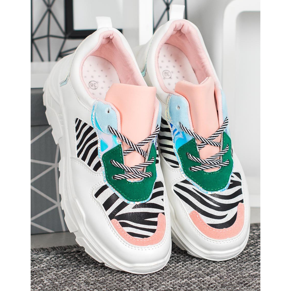 Les baskets SHELOVET Fashion dans une version blanche et multicolore sont un choix parfait pour les femmes qui apprécient à la fois le style et le confort. Ces chaussures extrêmement impressionnantes se distinguent par une combinaison originale de couleurs qui attirera certainement l'attention et mettra en valeur n'importe quel style.