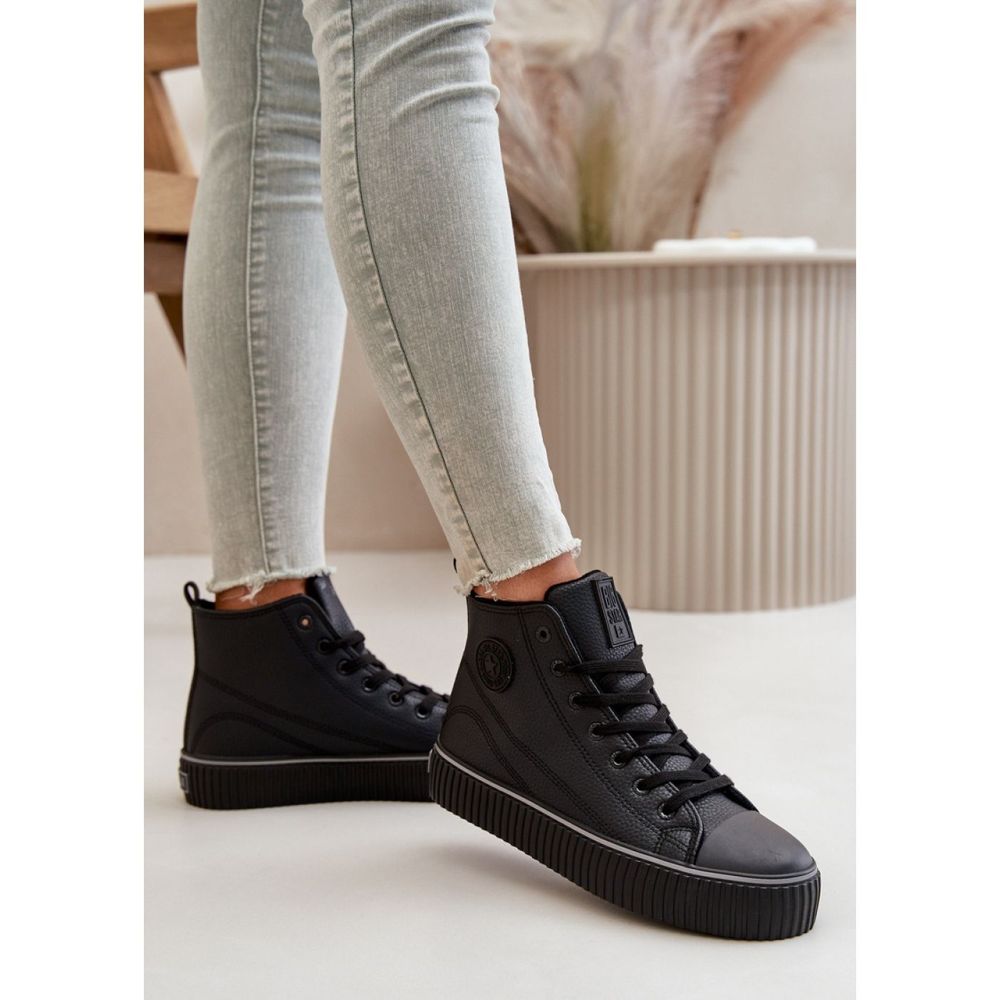 Model Big Star OO274790 Black - Step in Style Les baskets sont la combinaison parfaite de confort et de design à la mode qui fonctionnera dans toutes les situations. Fabriquées en cuir écologique de haute qualité, ces baskets noires sont non seulement élégantes, mais aussi respectueuses de l'environnement. Une supérieure de cheville supplémentaire et une plate-forme en caoutchouc solide avec une hauteur de 3,5 cm de stabilité et un confort de port.