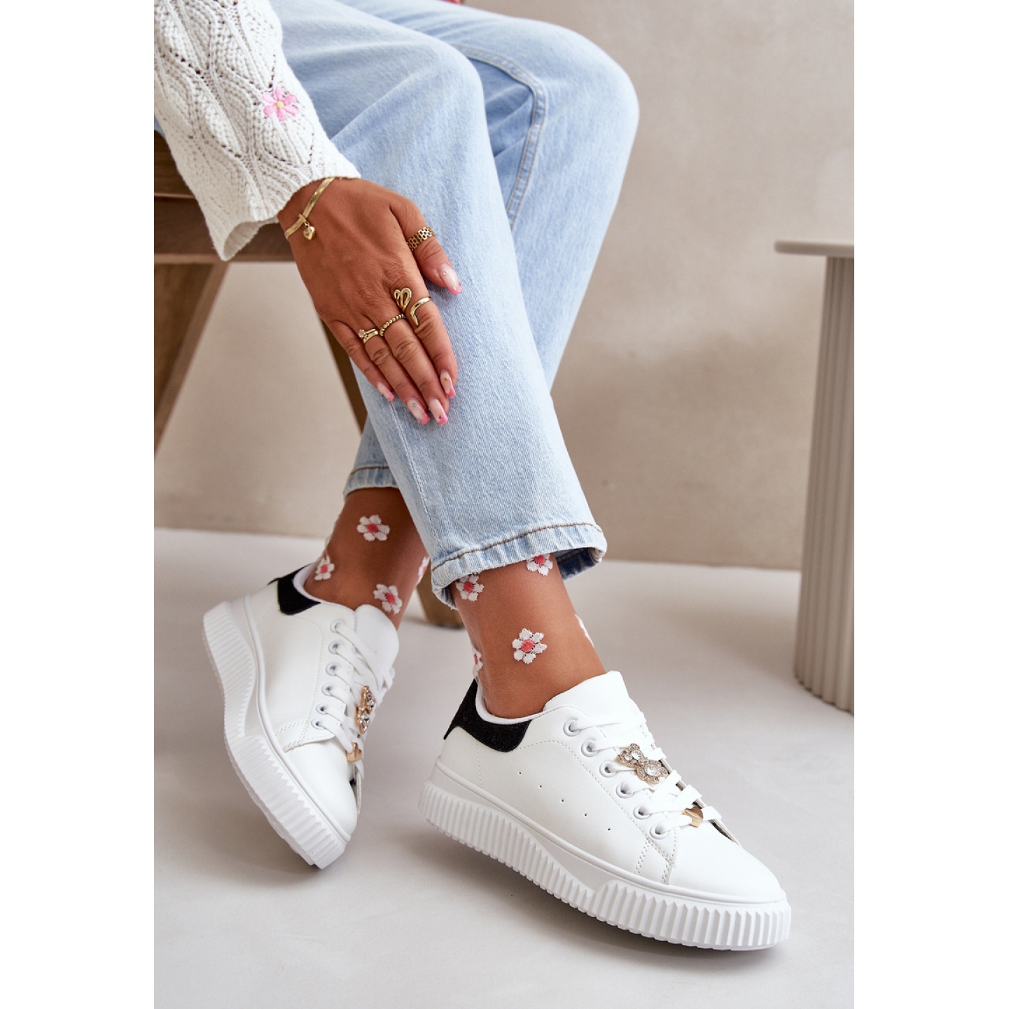 Les baskets basses pour femmes en cuir écologique allient style et confort. Posées sur une plateforme, ces baskets se démarquent par de charmantes épingles sur les lacets qui leur confèrent un charme unique. Ce sont des chaussures parfaites pour un style quotidien, qui allient look tendance et confort de port.