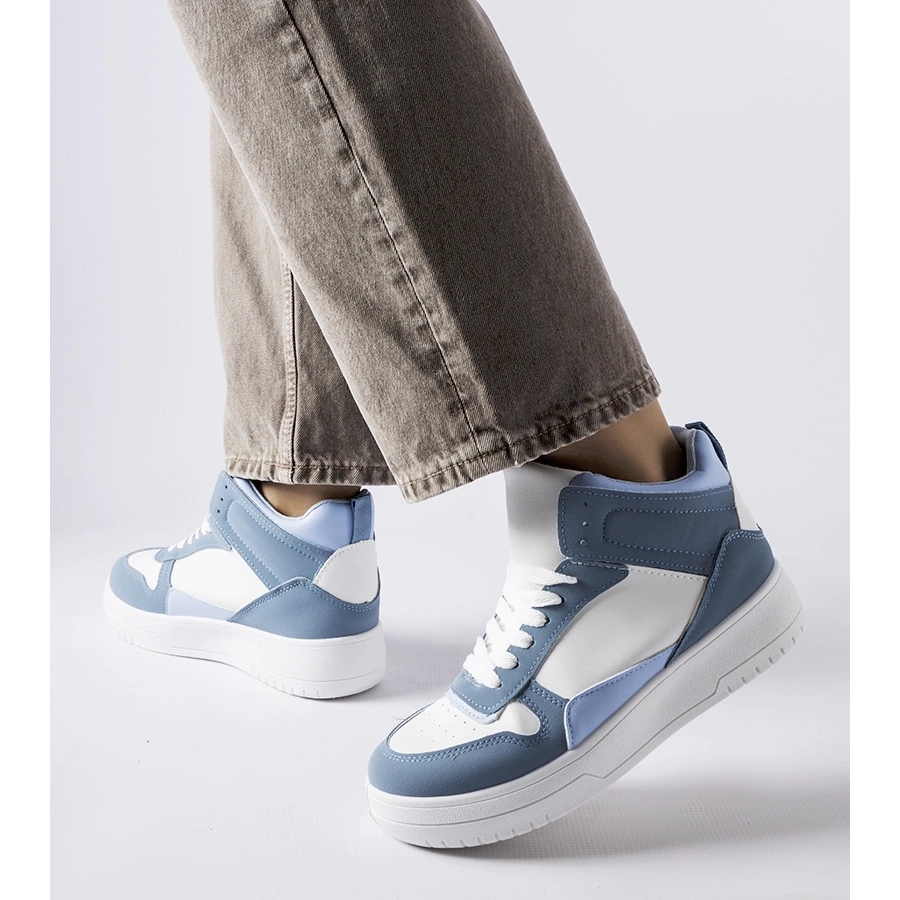 - Couleur: bleu avec des inserts blancs; semelle blanche